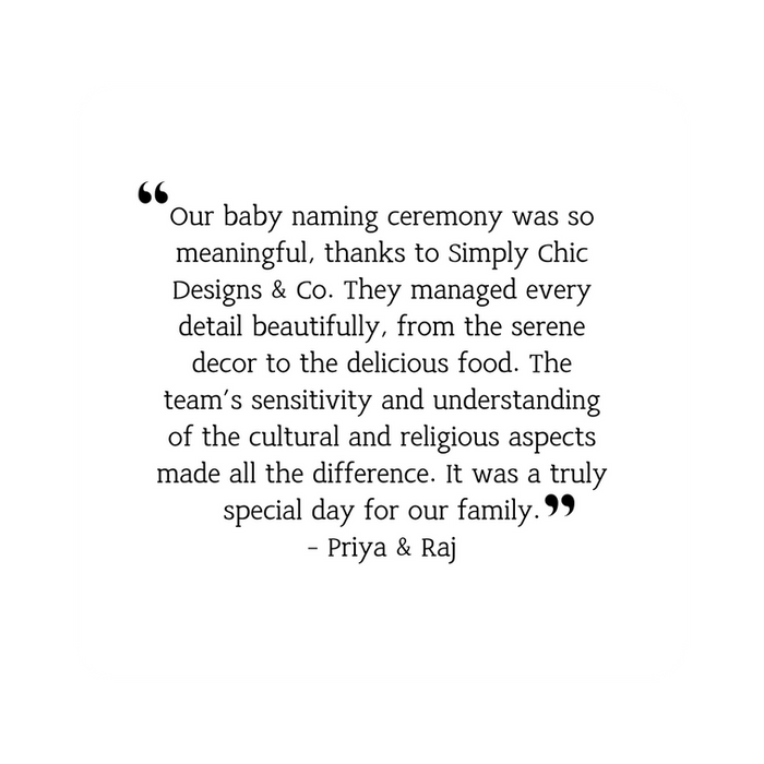 We couldn’t be happier with our planning experience! Simply Chic Designs & Co. has helped us weave together our dream of a modern, elegant wedding that honors our cultural traditions in beautiful ways. Every conversation has been inspiring, and each new planning detail has left us more excited for the big day. We’re truly counting down the days to see all their incredible work come together!